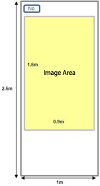 Poster boards will be provided to display your materials. The board size is 2.5m high and 1m wide and the poster size is 1.6m high and 0.9m wide. Materials, including title, MUST NOT exceed the image area (see picture).